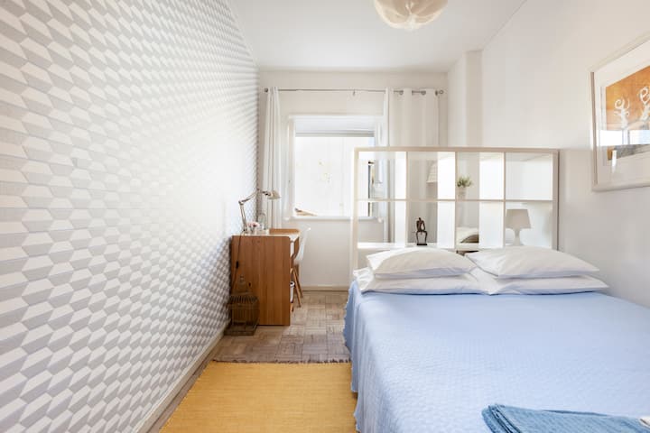 Una habitación solo para ti en un alojamiento, con acceso a áreas compartidas.
