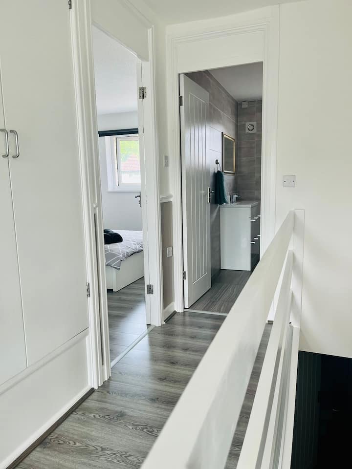 Moderno dormitorio doble privado en una casa compartida
