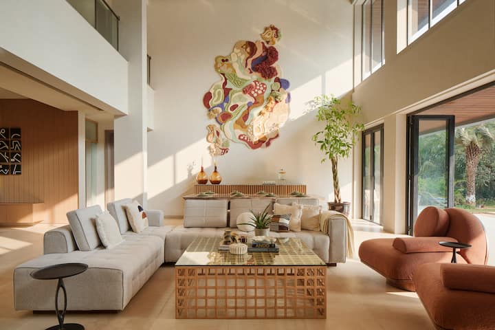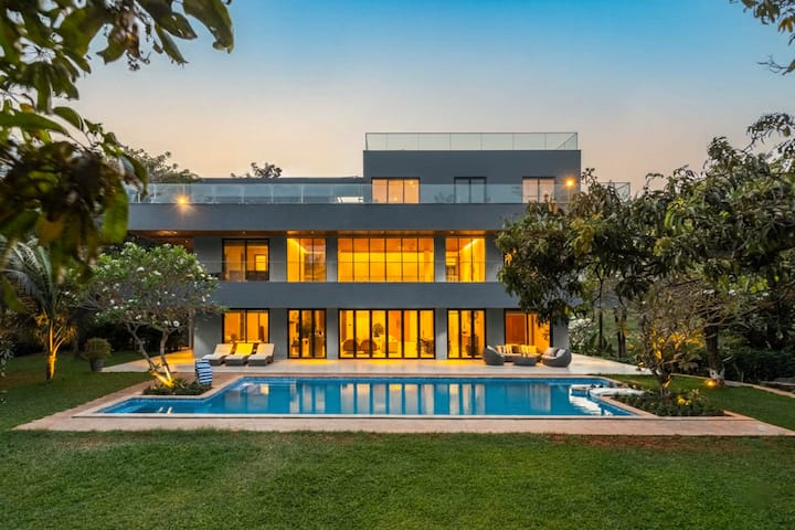 Una extensa casa de vacaciones ubicada en medio de gloriosas vistas, vastas extensiones de exuberante vegetación y amplios espacios al aire libre, The Reflection House es una escapada serena. Los interiores inmaculados y mínimos complementan la espaciosa fachada blanca. Esta casa de cinco dormitorios cuenta con una sala de estar digna de salón, una terraza y un cuidado césped con columpios y otros muebles al aire libre. ¡Claramente, se presenta como la casa de vacaciones perfecta para una escapada relajante!