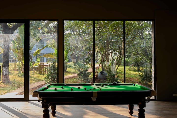 Dentro de la propiedad, los huéspedes pueden disfrutar de un relajante chapuzón en la piscina. Juega juegos de interior como cartas, tenis de mesa, piscina y futbolín. Date un paseo tranquilo por el césped bellamente cuidado, relájate en la cabaña y disfruta de un banquete al aire libre. Dirígete a la terraza y sumérgete en la brisa brumosa y saborea los espléndidos paisajes. Disfruta de una lujosa barbacoa.