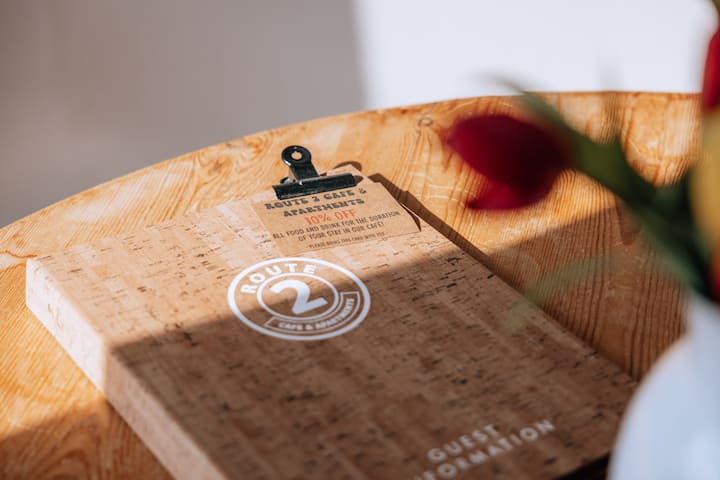 Somos Kate y Joe. Con nuestro pequeño niño pequeño, Freddie, a cuestas, somos dueños de Route 2 Cafe & Apartments en Topsham, Devon.