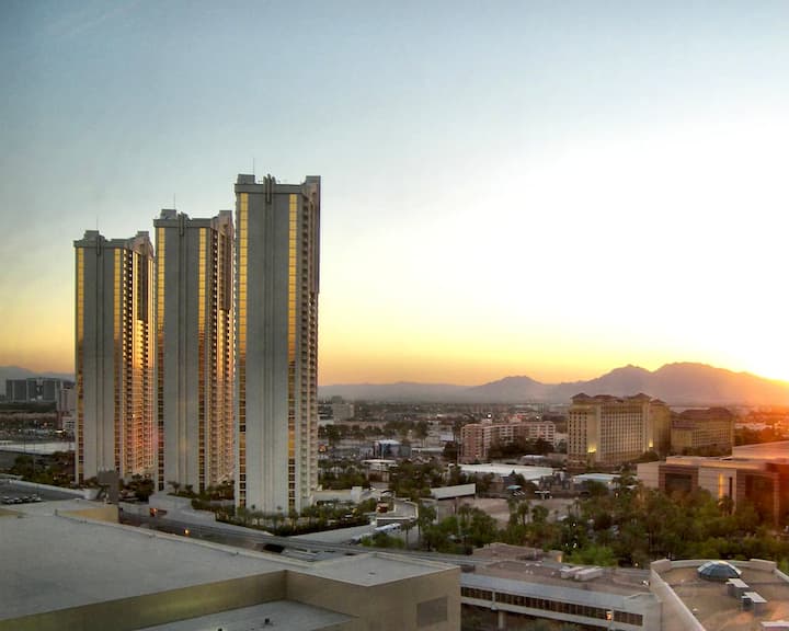 ★★★ Disfruta de unas vistas espectaculares del Strip de Las Vegas desde la privacidad de tu suite Signature Studio de 550 pies cuadrados.