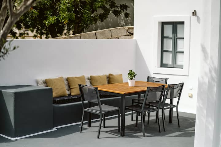 - Renta de alojamientos vacacionales con área de asientos al aire libre en Santorini
