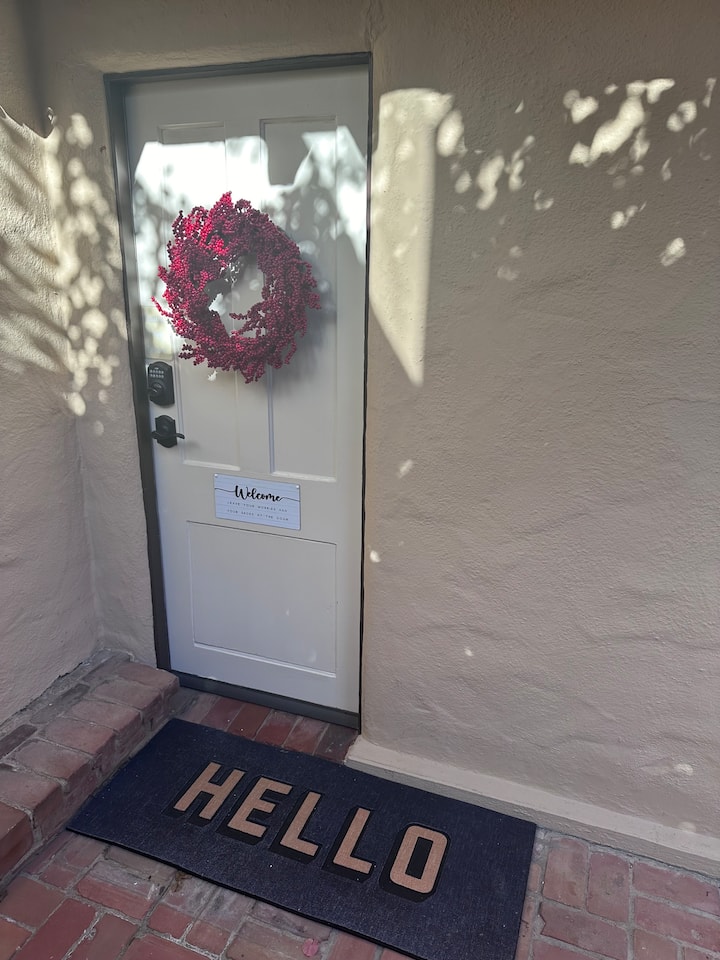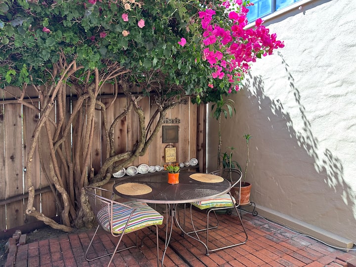 Habitación privada con baño, cocina pequeña y hermoso patio