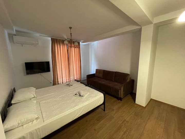 1 cama matrimonial, 1 sofá cama