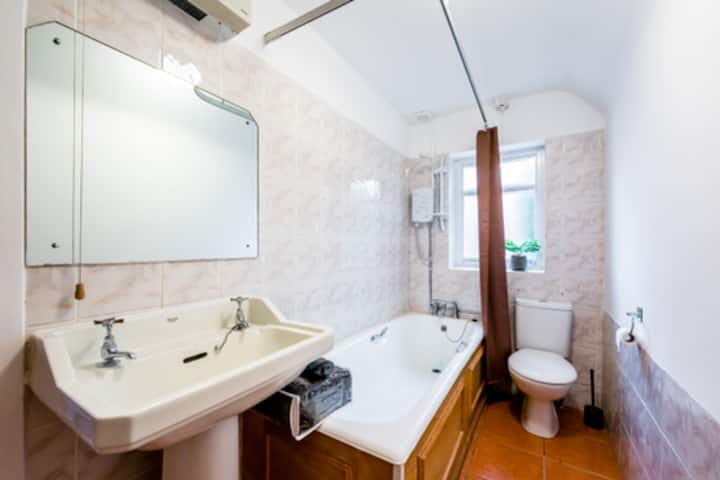 Baño 1: bañera, regadera (eléctrica), inodoro y lavabo
