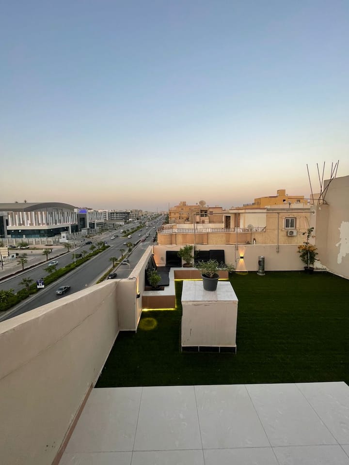 Azotea privada con jardín al aire libre, vista a la arena