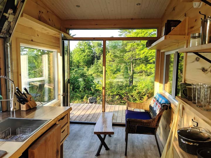 ¡Rhya Cabin ofrece una oportunidad única para alojarse en tierras de conservación de Rideau Valley en el municipio oriental de Tay Valley en Ontario! Este refugio fuera de la red tiene vistas a un lago tranquilo y protegido y está rodeado de naturaleza. Rhya está cómodamente escondida en una ensenada que es muy propia, pero comparte el lago con nuestra cabaña Mica, que está situada en una península a 400 metros de distancia.