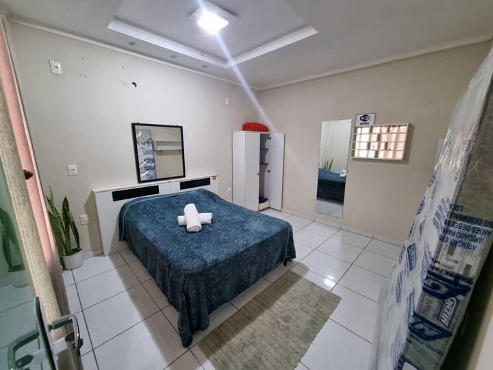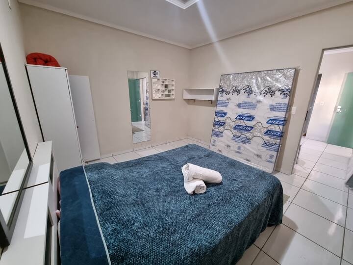 1 cama matrimonial, 1 colchón en el suelo
