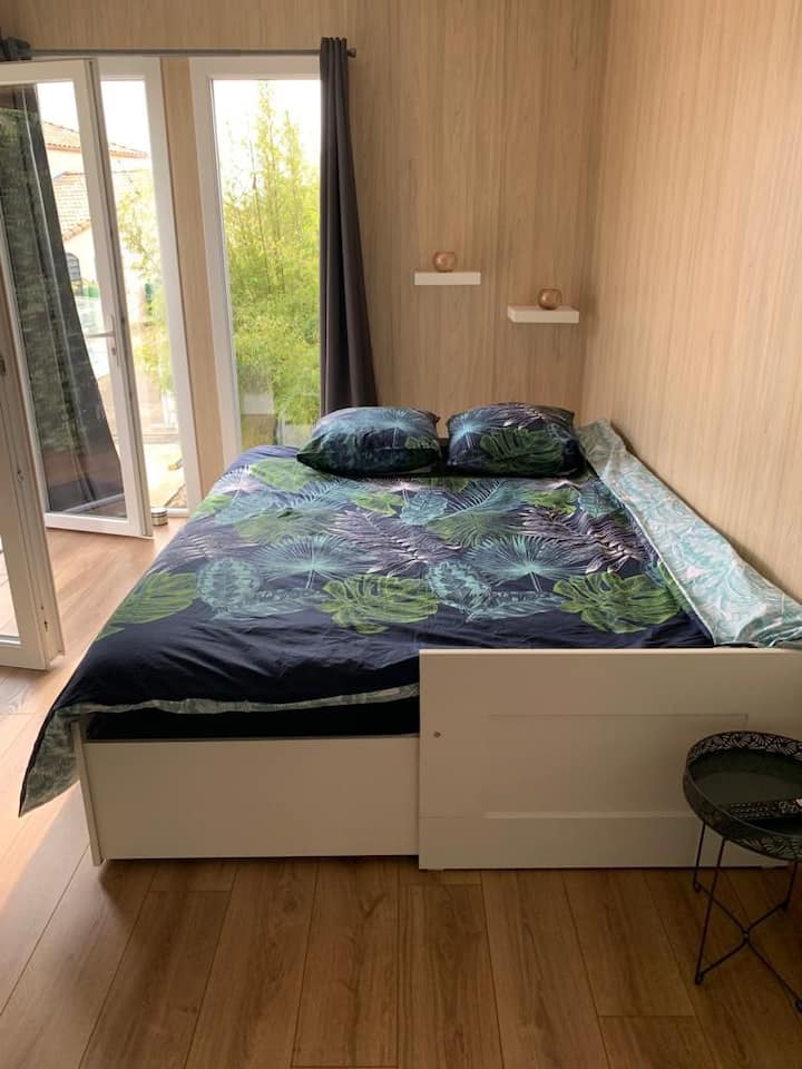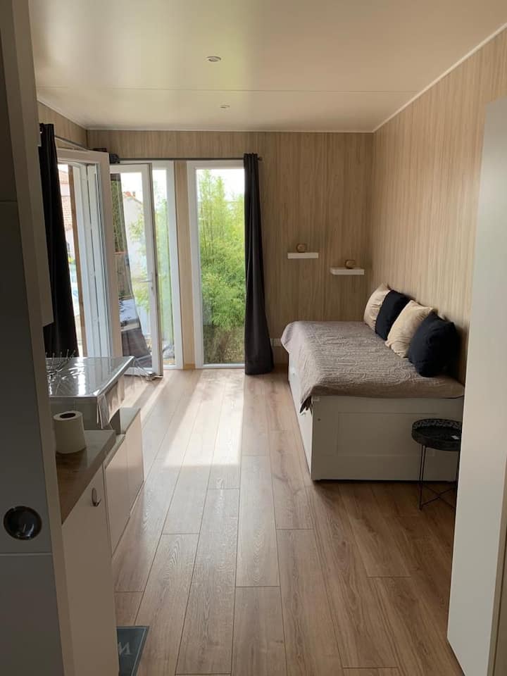 - Renta de alojamientos vacacionales con área de asientos al aire libre en Le Loroux-Bottereau