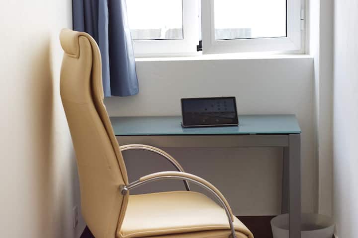 Una habitación con wifi apta para trabajar.