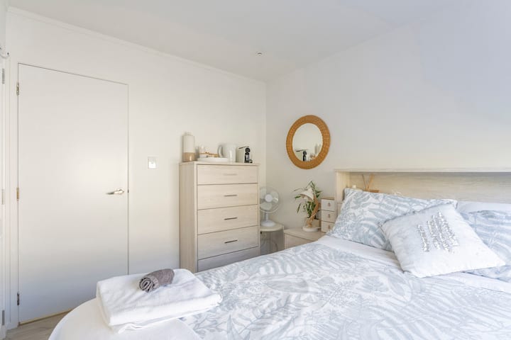 Un dormitorio en Milford: oasis de jardín/playa