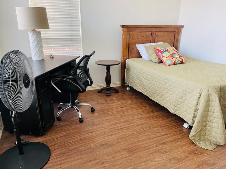 Una habitación con wifi apta para trabajar.