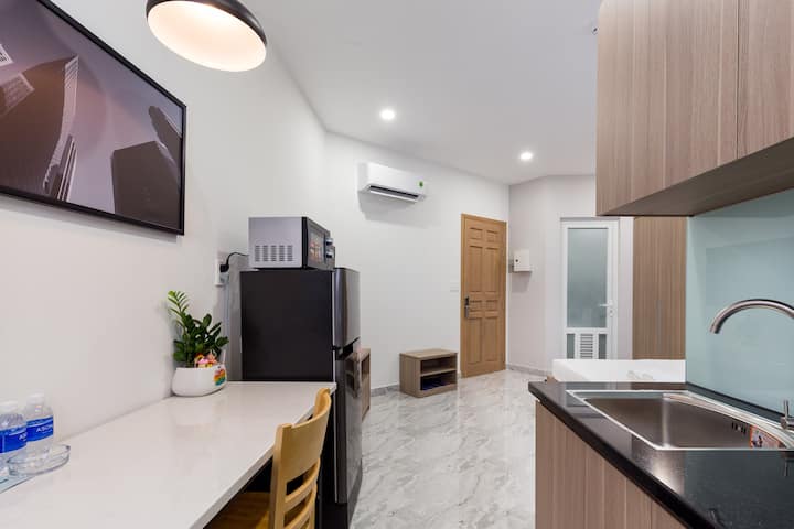 Encantador estudio para 2 personas cerca del aeropuerto (10 min) y skybar