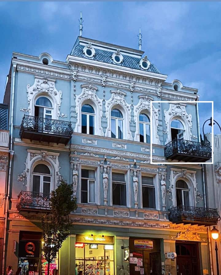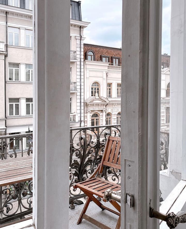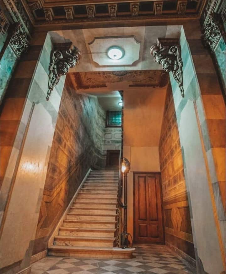 Estudio en palacio histórico con balcón