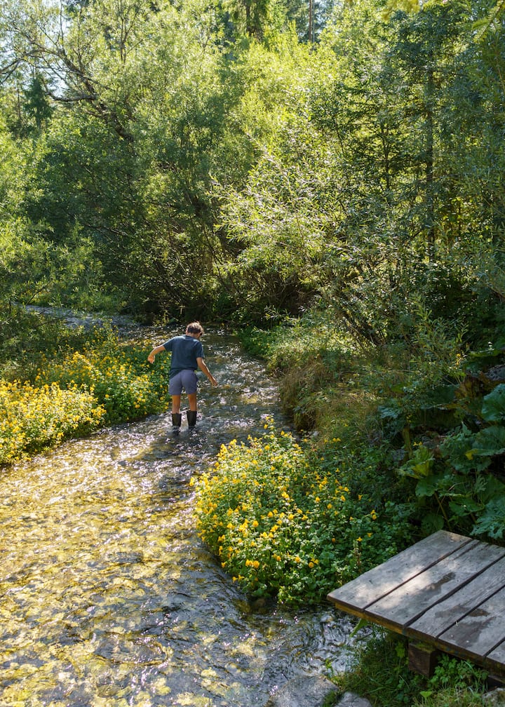 Casa de vacaciones junto al arroyo / Diseño y sauna