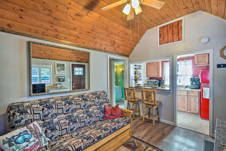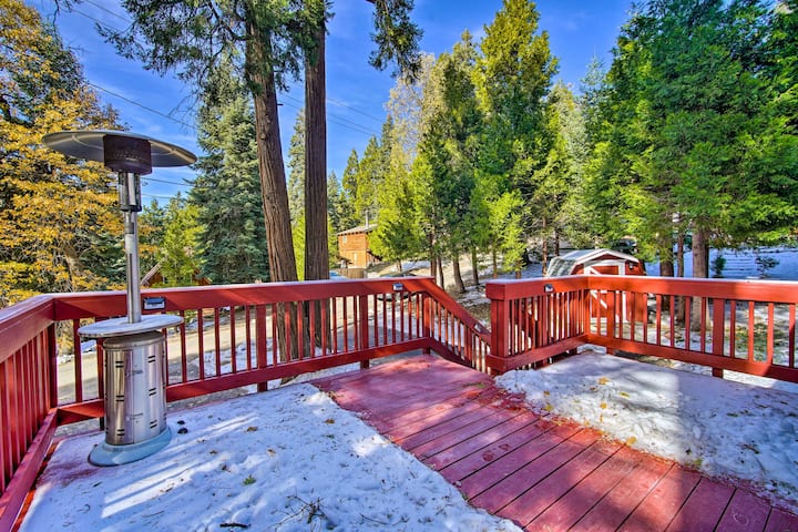 Cabaña en Running Springs con terraza y vistas al bosque