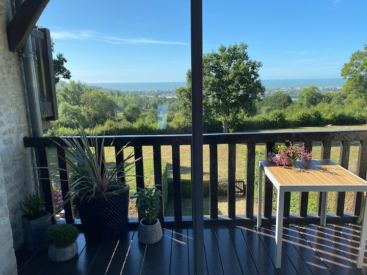 - Renta de alojamientos vacacionales con área de asientos al aire libre en Calvados