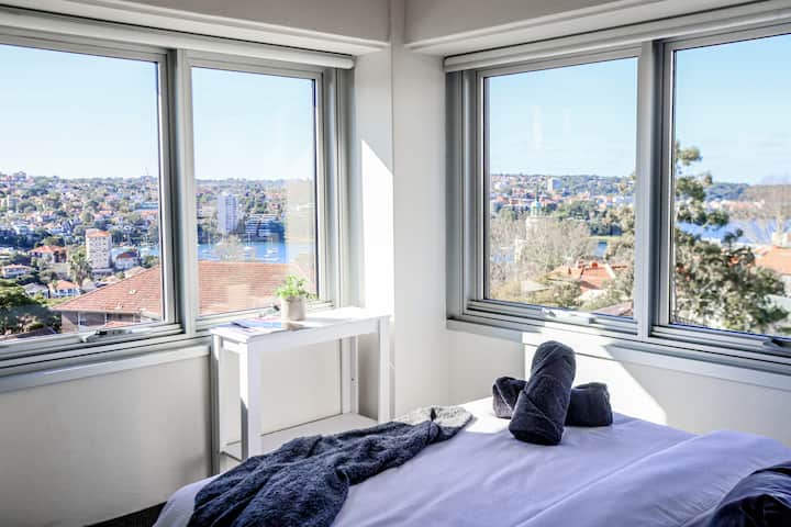 Vistas impresionantes con vistas al puerto de Sídney. Ubicado en Kirribilli, a 4 minutos a pie de la estación de tren de Milsons Point y del ferry Milsons Point, que ofrece acceso directo a Circular Quay en solo 1 parada.