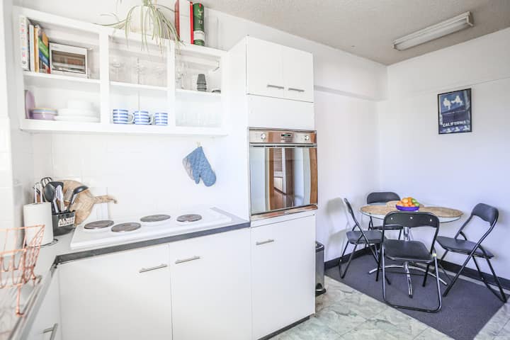 Perfectamente situado en el corazón de la ciudad, disfrutarás de un fácil acceso a todo. Ten en cuenta que el espacio es compacto y ofrecemos lavadoras compartidas que funcionan con monedas en el nivel de entrada. Habitaciones de contenedores en la planta baja. El estacionamiento está disponible, pero no es adecuado para camiones grandes, y el tanque de agua es ideal para duchas cortas. ¡Disfruta tu estadía!