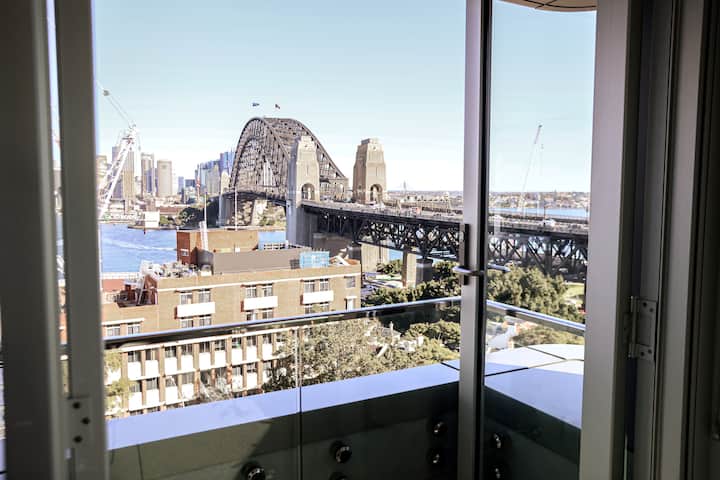 Entra en este hermoso apartamento y déjate cautivar por las impresionantes vistas del puente del puerto, el puerto de Sídney y el horizonte de la ciudad. Diseñado con una estética minimalista retro shabby chic, el espacio cuenta con líneas limpias, tonos neutros y un ambiente acogedor.