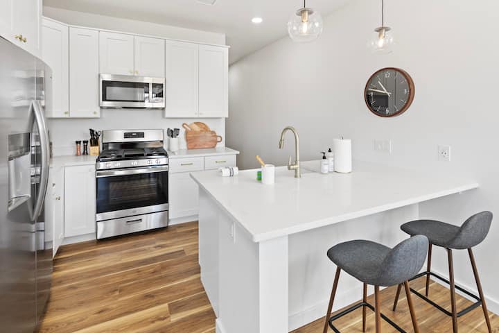 Con todas las comodidades de una vivienda: colchones, sábanas y almohadas de calidad, una cocina totalmente equipada, televisores, muchas toallas y lavadora/secadora.