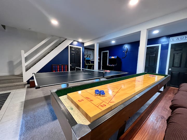 • Sala de juegos: la sala de juegos está repleta de entretenimiento: un juego de tejo, una mesa de ping pong, dos juegos de arcade y cómodos asientos alrededor de un televisor inteligente. ¡Incluso ofrecemos cofres de juguetes!