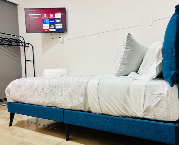 Una habitación solo para ti en un alojamiento, con acceso a áreas compartidas.