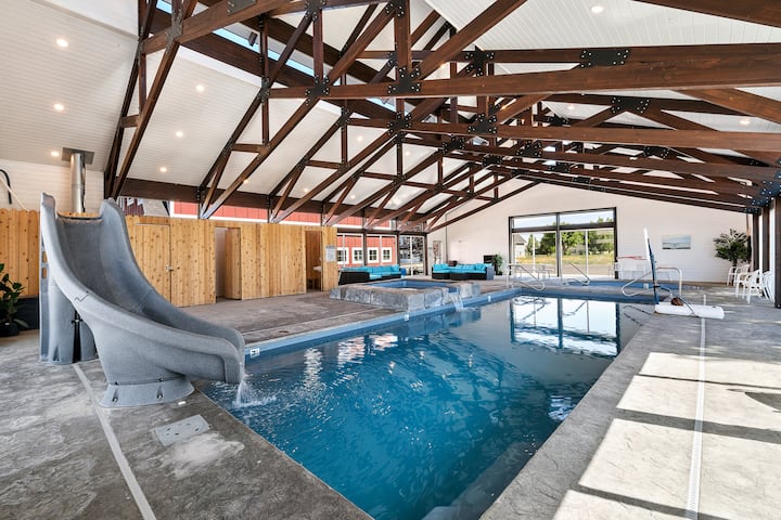 ¡No te olvides que el granero tiene una increíble casa privada con piscina cubierta justo al lado! La piscina se comparte con el granero, la granja y el silo (casas de al lado). ¡Reserva uno, dos o los tres alojamientos para agregar un poco de aventura en el agua para nadar a tu estadía!