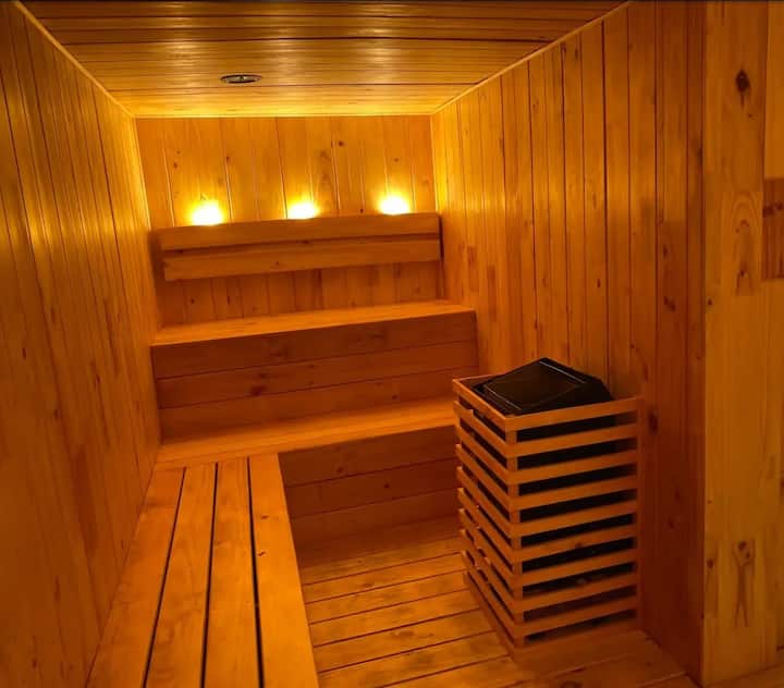 Relájate con una ducha exterior y un sauna.