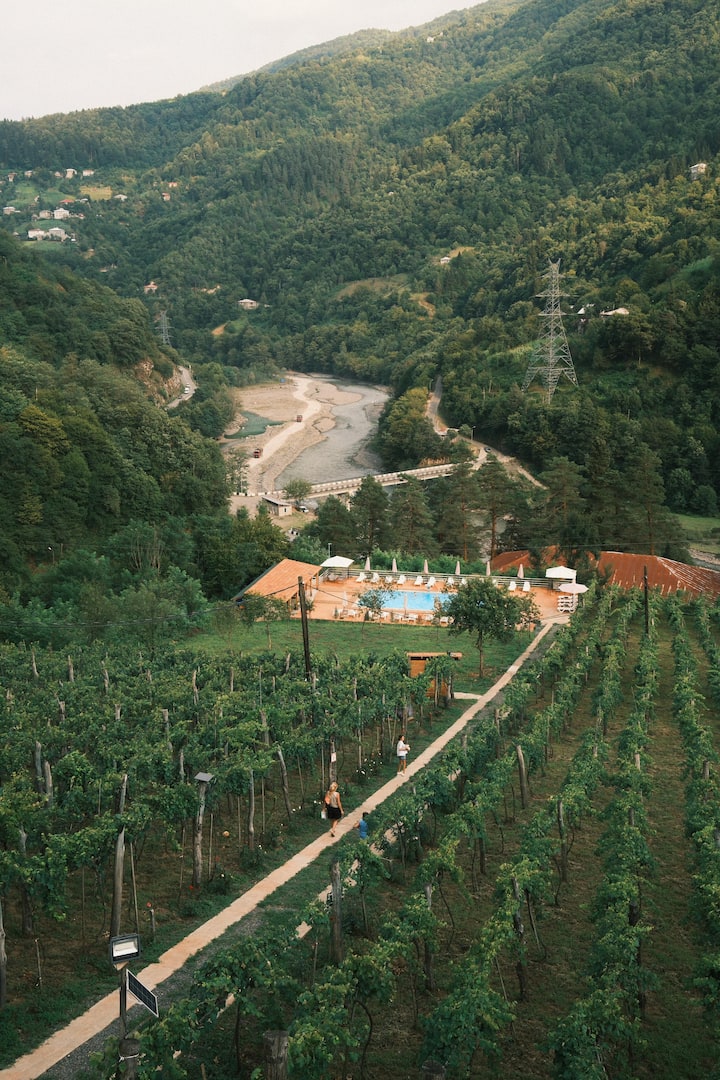 Chateau en Ajara, Georgia, ofrece una experiencia vinícola única. Nuestro viñedo, encaramado de 500 m de altura, nutre uvas exquisitas para vinos orgánicos. Únete a nuestro festival de cosecha “Rtveli” para la recolección de uvas y festividades culturales. Visítanos en Varjanisi, Keda, para explorar nuestro legado vinícola y saborear nuestros vinos ecológicos. Experimenta el encanto del Chateau Iveri, donde cada botella cuenta una historia de patrimonio y pasión.