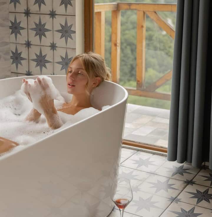 Cama king con bañera en Ajara