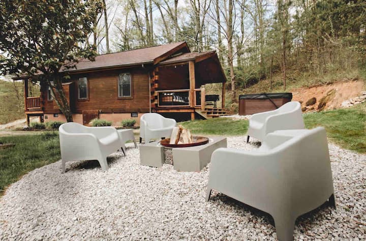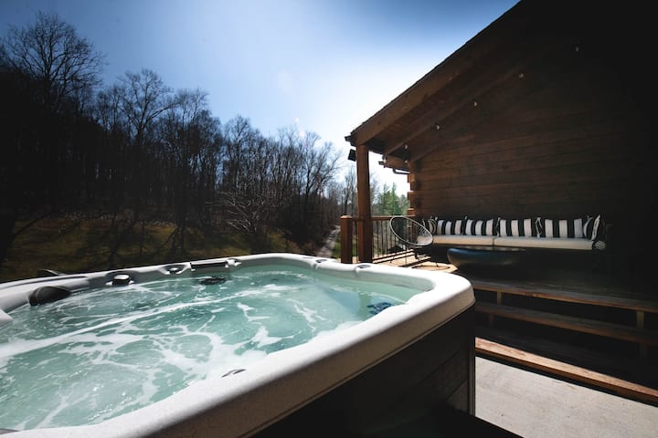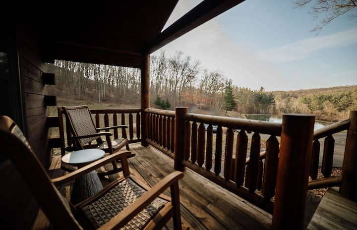 Hocking Hills • 1 dormitorio • Jacuzzi • Fogata • Vistas al estanque