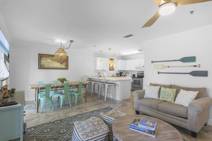 ¡Planta baja del condominio Gulf Place! A pocos pasos de piscinas comunitarias climatizadas y playa privada: 1 minuto a pie, el perro de arena