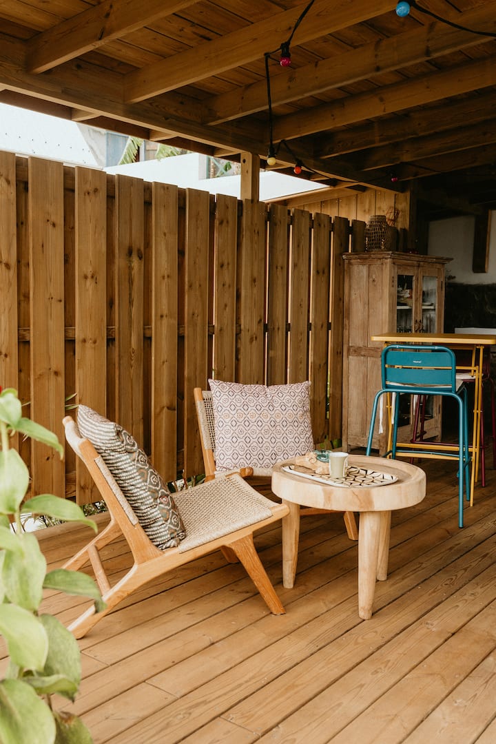 - Renta de alojamientos vacacionales con área de asientos al aire libre en Saint-Leu