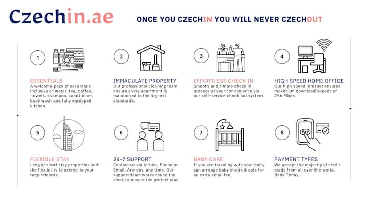 Ofrecemos una amplia gama de apartamentos de alquiler en todo Dubai. Mi experimentado equipo de relaciones con los huéspedes estará disponible las 24 horas para ayudarte con cualquier cosa que necesites y para que tu estancia sea inolvidable.