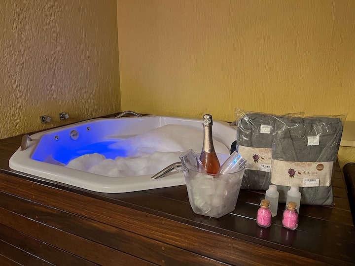Aquí, además de la comodidad, tendrá diferenciales como: Jacuzzi privado con SALES DE BAÑO Y BATAS, ROPA DE CAMA Y BAÑO, KIT DE PLAYA, SECADOR DE PELO Y LAVADORA.