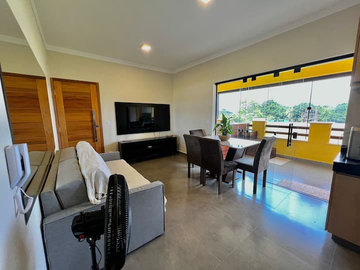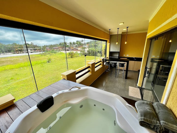 Diferenciales de la propiedad: Jacuzzi privado con sales de baño y albornoces, ropa de cama y baño, kit de playa (silla, sombrilla, hielera), electrodomésticos prácticos y más allá de lo “básico” (cafetera eléctrica, filtro de agua, secador de pelo, plancha y lavadora) y lo mejor de todo, a solo unos metros de la mejor playa de la Costa Norte, ven y conoce mejor el espacio: Piso de nueva construcción en urbanización cerrada, a menos de 300 metros de la playa de Maresias. Comodidad y sofisticación, un espacio ideal para disfrutar en pareja o en grupos de hasta 5 huéspedes durante el fin de semana o periodos más largos, al fin y al cabo es tu casa, bienvenido de antemano El jacuzzi es privado del Flat y está integrado en el espacio gourmet del quincho, donde también puedes hacer una parrillada mientras te relajas tomando unos #bonsDrinks en Hidro Spa Cocina moderna y totalmente equipada con electrodomésticos de primera (nevera Frost Free Inverse, anafe, horno, microondas, licuadora, filtro de agua, cafetera eléctrica y sandwichera) y encontrarás todos los utensilios ideales para preparar las comidas En el salón comedor hay un sofá (cama), SMART Tv 43'' con canales cerrados, wifi, ventiladores portátiles y una mesa de comedor con capacidad para 4 personas cómodamente Los 2 dormitorios tienen aire acondicionado, armarios empotrados para guardar tus pertenencias más cómodamente e incluso te facilito un kit de cama y baño, es decir, no te preocupes por llenar tus maletas de ropa de cama y aún así tener que lavarlas cuando llegues. en domicilio - lo único que NO PROPORCIONO son MANTAS, favor de traerlas - Su amigo de 4 patas es bienvenido, sin embargo, indique el tamaño y la cantidad de mascotas antes de reservar, sujeto a una tarifa de limpieza adicional para la limpieza posterior de la casa. Ubicación privilegiada cerca de varios restaurantes con cocina excepcional, bares, cafeterías y mercados. También cerca de las playas de Paúba, Santiago y Toque-Toque Pequeño, otras excelentes opciones de paseo, además de Maresias Haz tu reserva y siéntete como en casa, ¡estaré encantada de recibirte! Gran abrazo, Stephanie Leme – Anfitriona superanfitriona