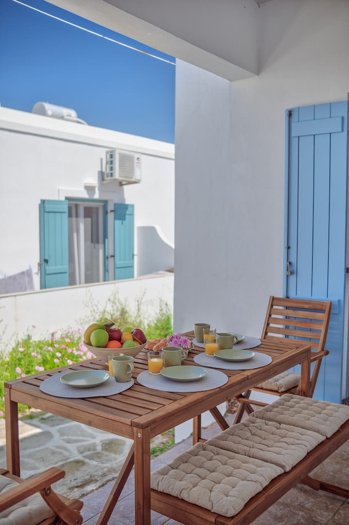 - Renta de alojamientos vacacionales con área de asientos al aire libre en Antiparos