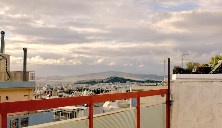 Penthouse Pagrati con gran balcón con vistas