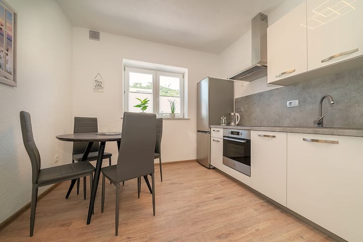 - Renta de alojamientos vacacionales con área de asientos al aire libre en Baška