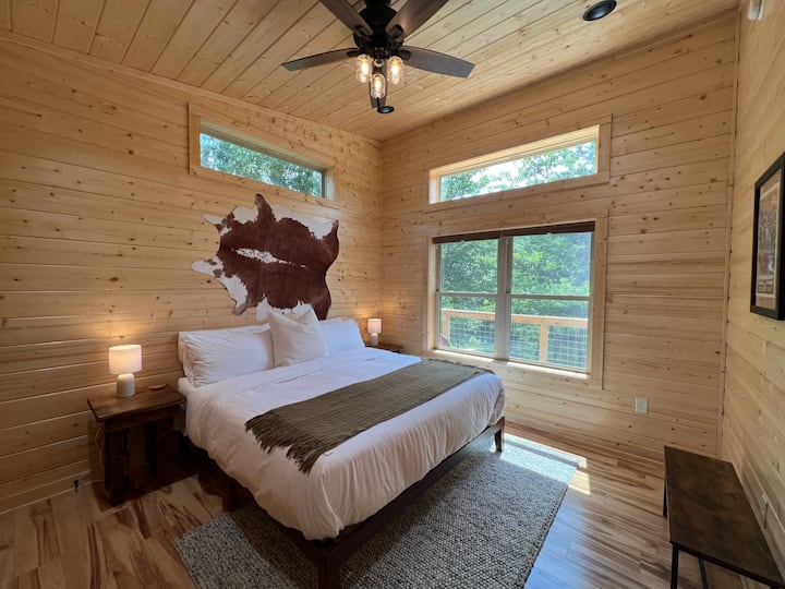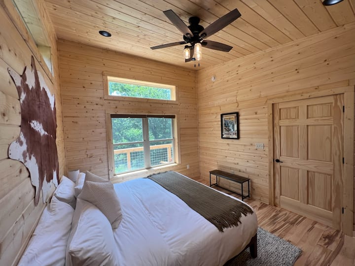 Modern 2BR cabin w/ sauna, mountain views, & pond