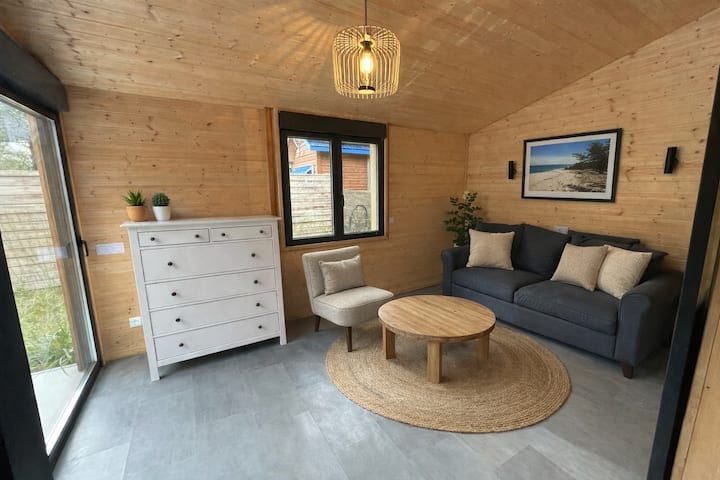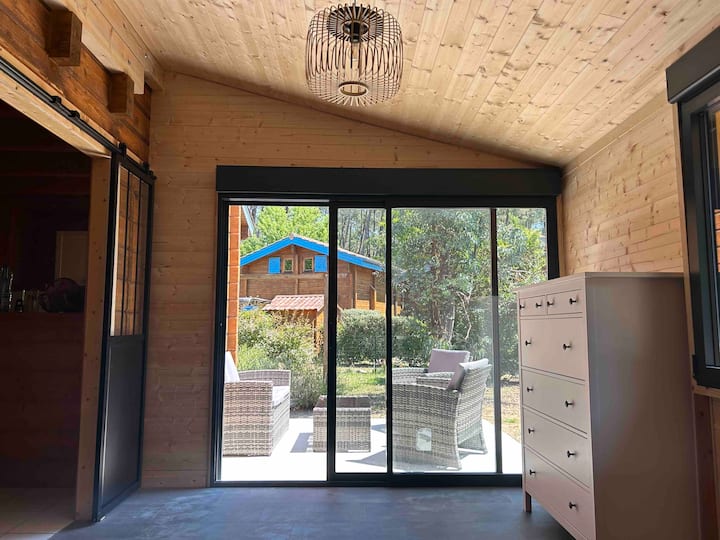 Cabaña de madera con acceso a la piscina y al spa - 4 km del océano