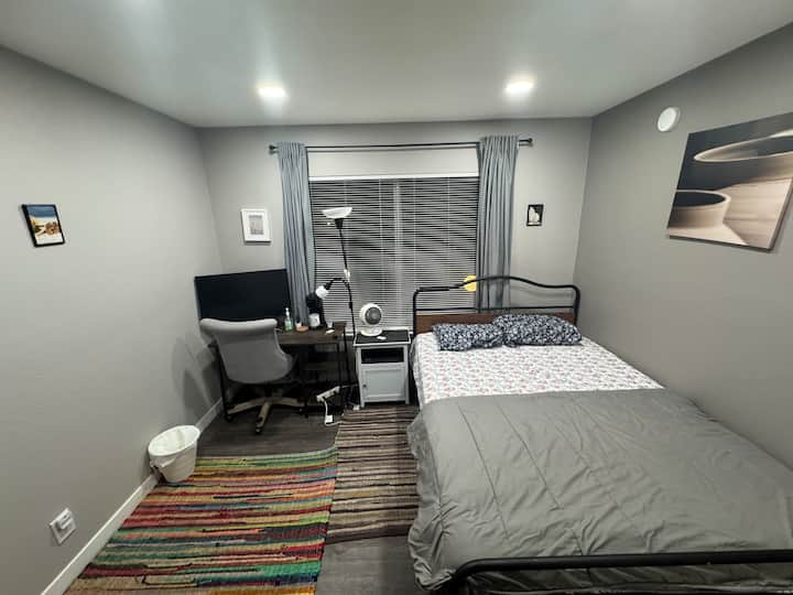 Una habitación solo para ti en un alojamiento, con acceso a áreas compartidas.