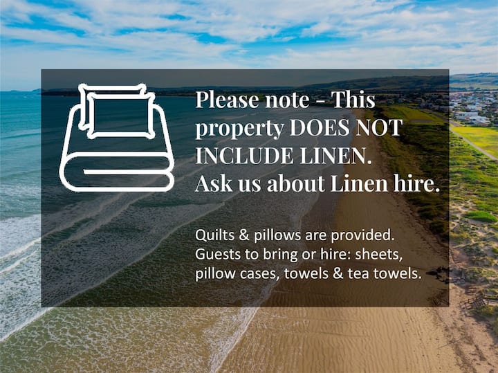 - La ropa de cama no está incluida. Se proporcionan edredones y almohadas, pero los huéspedes deben traer o alquilar sábanas, fundas de almohada, toallas y paños de cocina. El alquiler de ropa de cama está disponible a pedido.