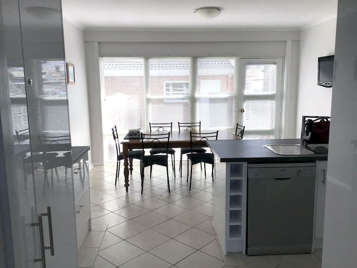 Relájate en una de las dos amplias habitaciones, diseñadas para alojar hasta cinco huéspedes. El dormitorio principal cuenta con una acogedora cama tamaño queen, mientras que el segundo dormitorio ofrece otra cama tamaño queen más una cama individual, lo que garantiza que todos disfruten de una noche de sueño reparador. El baño está bien equipado con una bañera relajante, una ducha separada y un inodoro separado, por lo que es fácil refrescarse después de un día de exploración. La lavandería renovada, completa con lavadora, agrega comodidad a tu estancia, para que puedas empacar ligera y mantener tu ropa fresca.