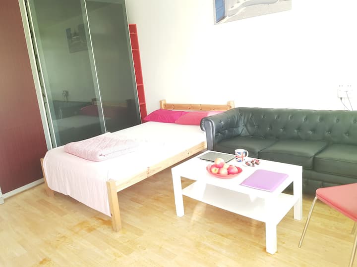 Una habitación solo para ti en un alojamiento, con acceso a áreas compartidas.