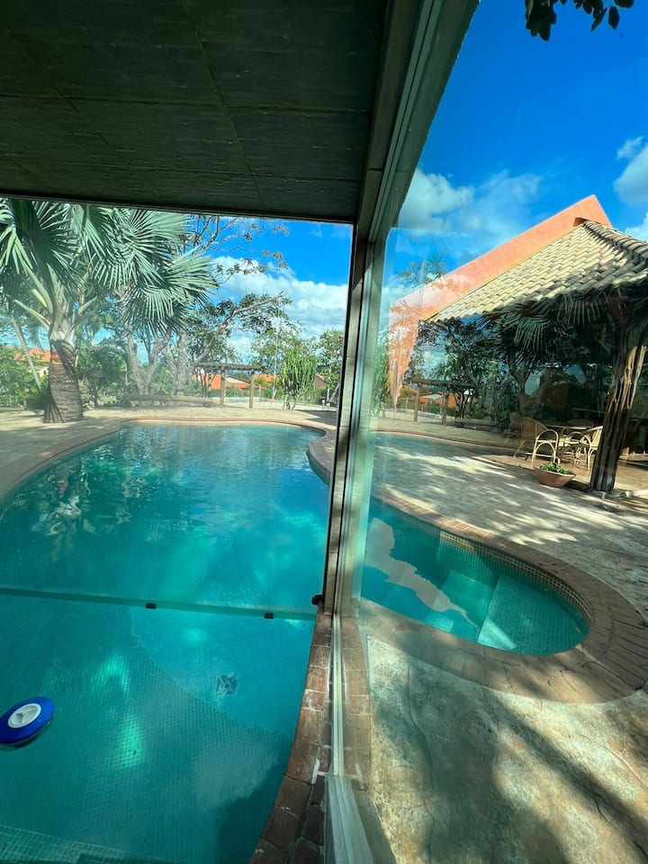 Este es uno de los pocos lugares en la zona con una alberca.