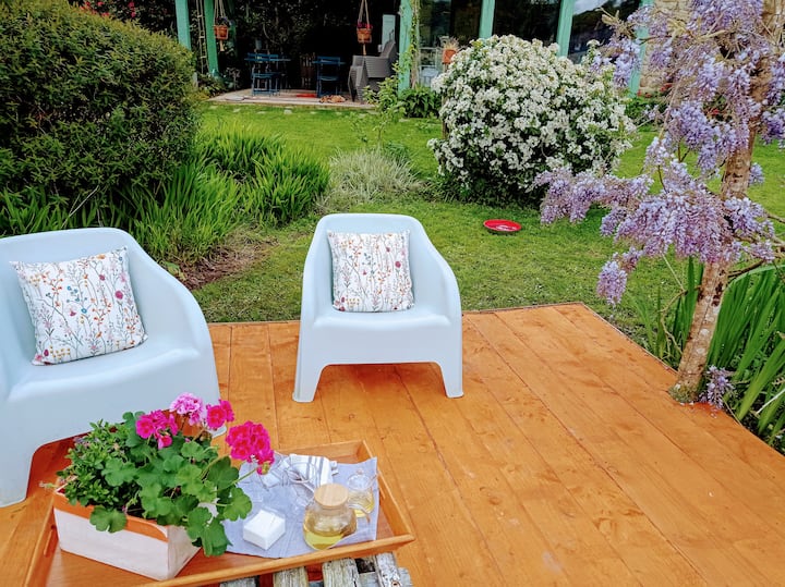 Habitación de huéspedes y cerámica a orillas del estanque