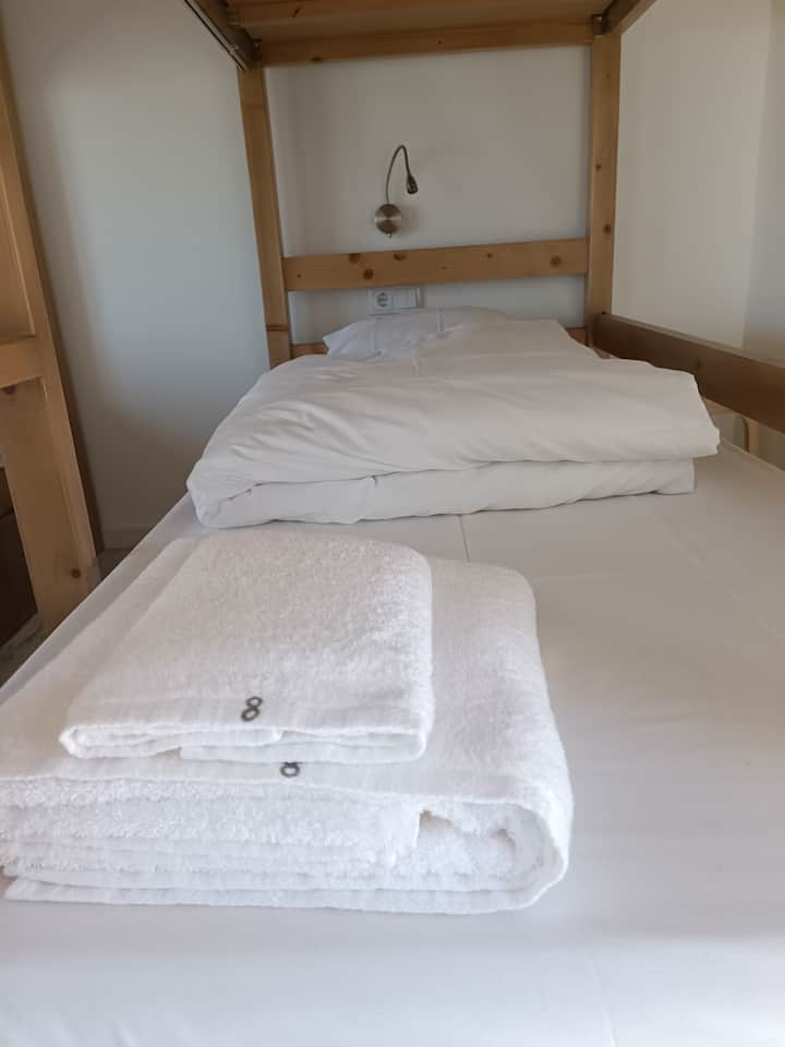 Habitación compartida en la playa con aire acondicionado y vistas al mar